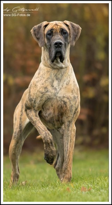 Our mailbox hangs in front of the entrance gate and what does not fit in there usually has to be picked up at the post office, because the postmen have great respect for the even bigger dogs ... and not just the postman. We do not have any magazine salesmen or people who want to convince us of their religion. However, that does not mean that Great Danes are very watchful. It has happened to us that people have made it to our front door and rang, without a dog has barked before. I can say in good conscience that Doggen are not good watchdogs.