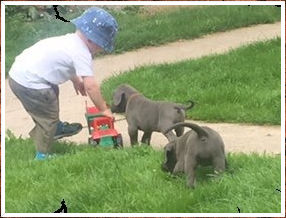 Doggen are extremely people-related, needy and sensitive. They treat tenderly, even with the smallest of children, and prove to be wonderful playmates for children who have learned to treat a dog respectfully and not roughly. Our son grew up with our mastiffs, and apart from a couple of cocky puppies, it always amazes us how careful and good-natured these dogs are. The cats are also fantastic with our mastiffs. Not every cat has such great friends.
