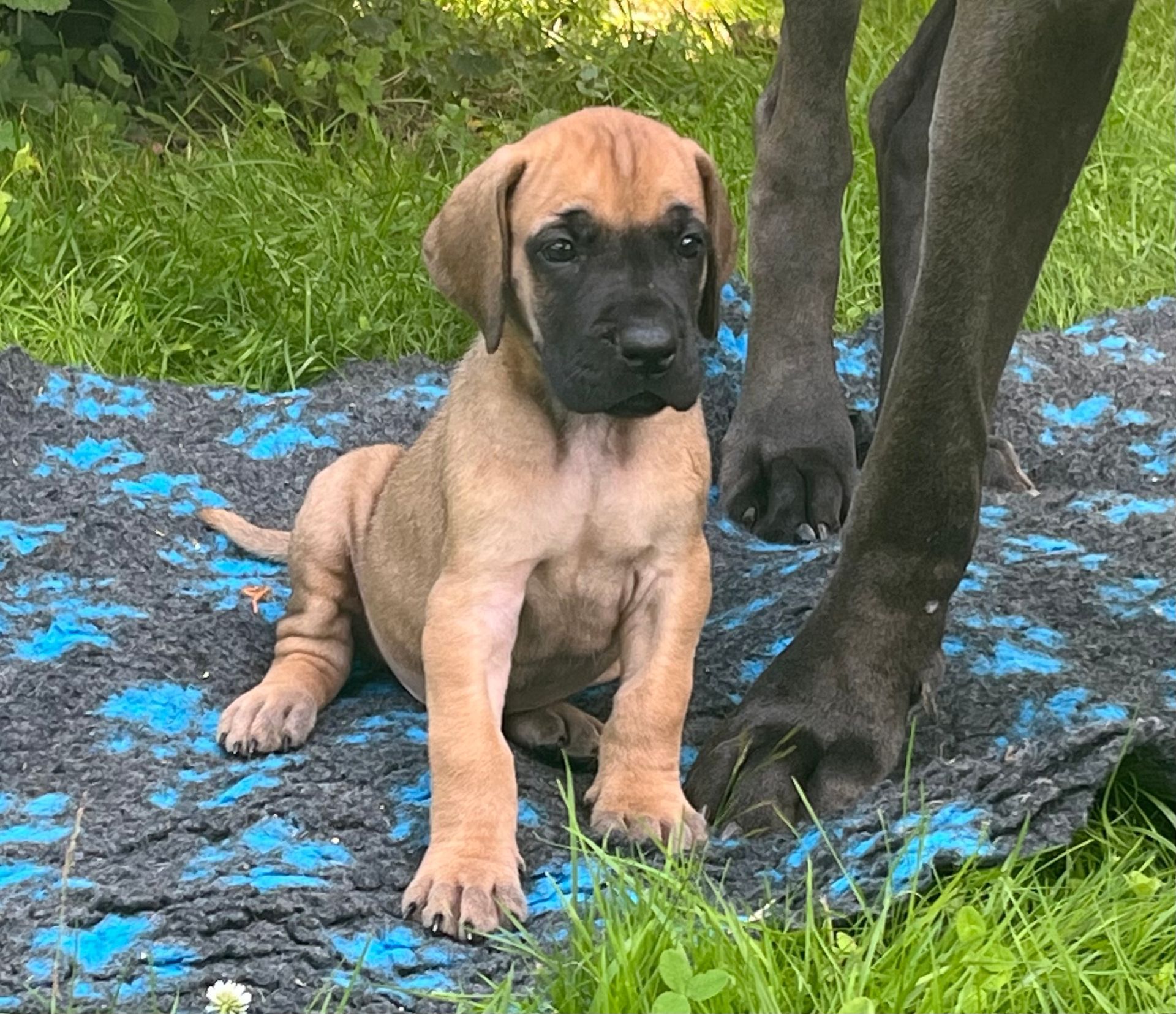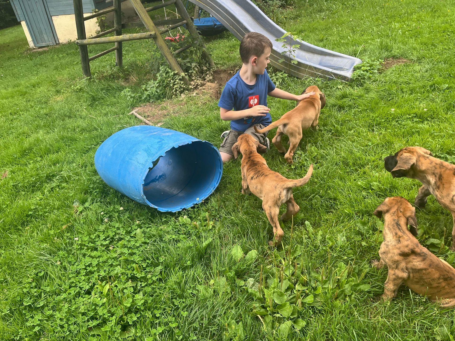 Am 30ten Mai hat unsere gestromte X-trawurst von der Wolfshöhle acht muntere Welpen nach dem Multichampion Quando Doggen-Sport geboren. Es sind vier gestromte Hündinnen, eine gelbe Hündin sowie ein gestromter Rüde und zwei gelbe Rüden.